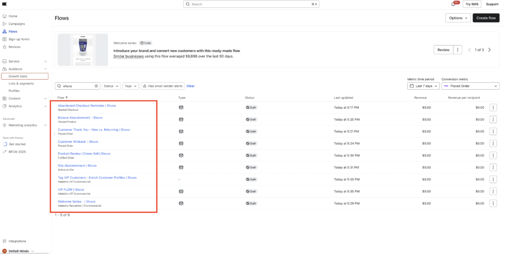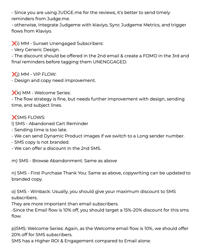 We will review your existing flow strategy looking for Foundational Flows, Advanced Flows, & Technology Flows followed by suggestions on flows to add to improve your KPIs & increase your overall revenue.