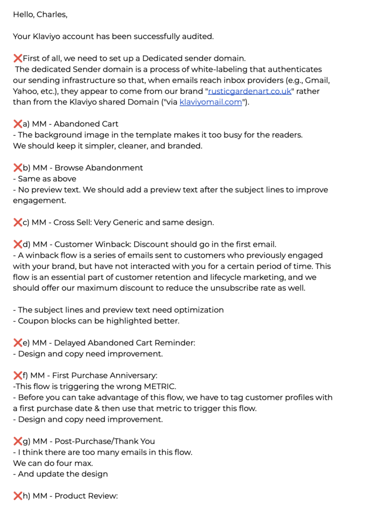 From campaigns and segmentation to design, deliverability, and conversions — we break down what’s working, what needs improvement, and what’s missing.